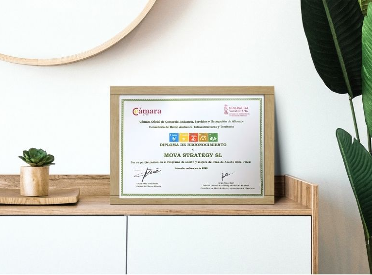 El diploma obtenido certifica no solo las buenas prácticas implementadas , sino también el compromiso continuo de MOVA con la innovación sostenible y su papel como agente de cambio en el ecosistema empresarial alicantino.